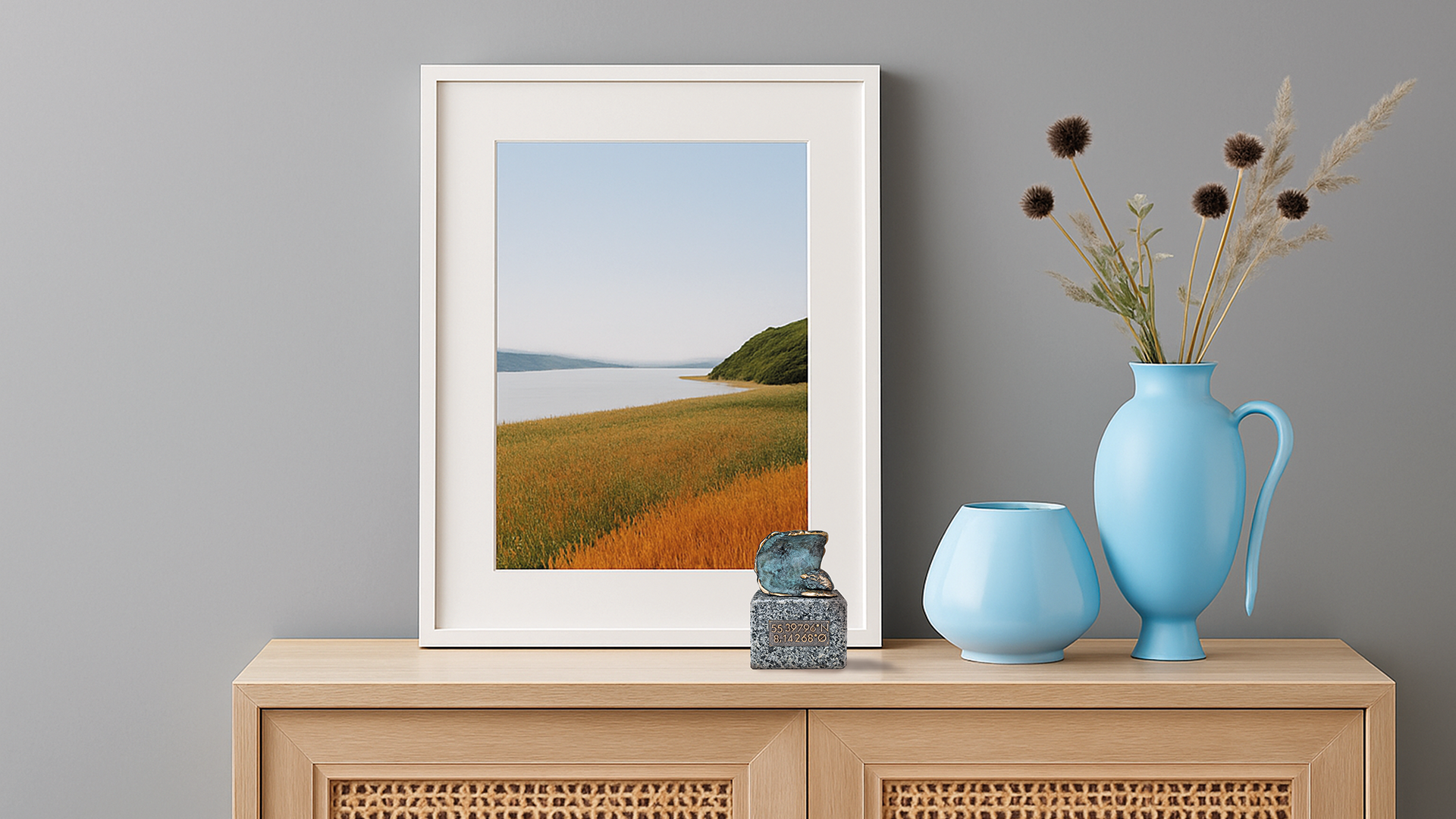| Skabt i granit og bronze, med symboler for skov, hav og kirkegård. Diskret markeret med koordinaterne til afskedsstedet - et evigt og personligt minde. Et smukt og meningsfuldt objekt i hjemmet, der skaber plads til refleksion, kærlighed og nærvær i hverdagen. Bevar kærligheden, og lad mindet leve videre - i hjertet og i dit hjem. |